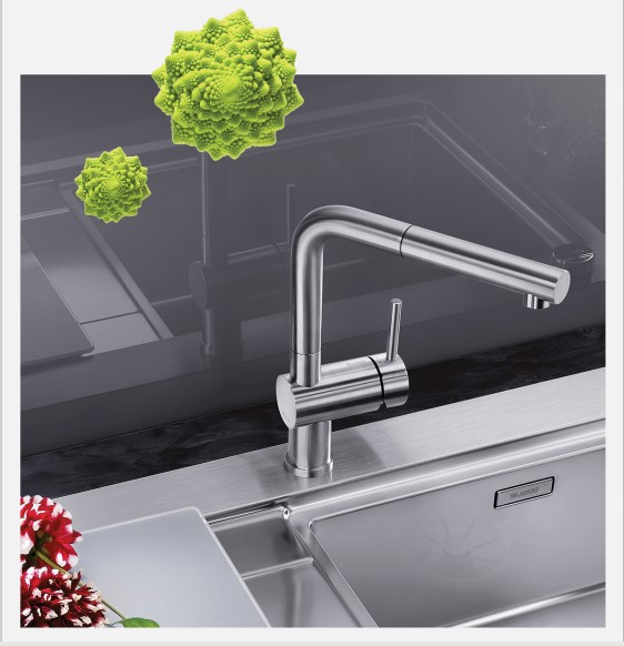 Vòi rửa chén Blanco Linus-S Chrome thiết kế kiểu dáng màu chrome rất sang trọng, vòi 2 đường nước nóng/lạnh, đầu vòi có thể kéo dài, tiện dụng tạo tính thẩm mỹ rất cao cho không gian phòng bếp. Hệ thống thổi khí chống bám cặn.Vòi được thiết kế nhẹ nhàng, mảnh mai dễ dàng sử dụng, là thiết bị nhà bếp không thể thiếu trong không gian bếp nhà bạn.
