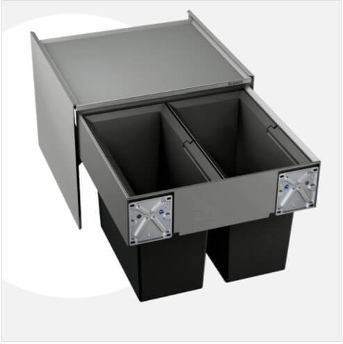 Thùng rác Blanco Select 50/2 sử dụng hệ thống thùng rác được tích hợp thanh ray để dễ dàng gắn vào mặt bên tủ và cửa tủ, với ray trượt có cơ chế đóng giảm chấn.