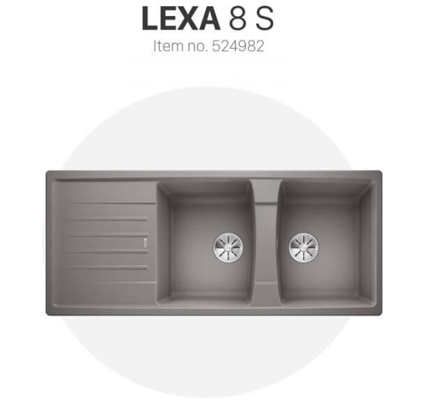 Chậu rửa chén Blanco LEXA 8S Alu Metallic thiết kế kiểu dáng Châu Âu, chất liệu cao cấp, màu xám kim loại sang trọng, gồm 2 chậu,1 bàn chờ tiện lợi khi sử dụng. Chậu rửa dễ dàng phối hợp với nhiều kiểu không gian trong gia đình bạn.