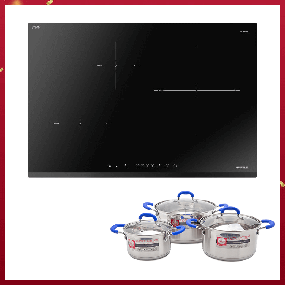 - Bếp từ 03 vùng nấu, lắp đặt âm