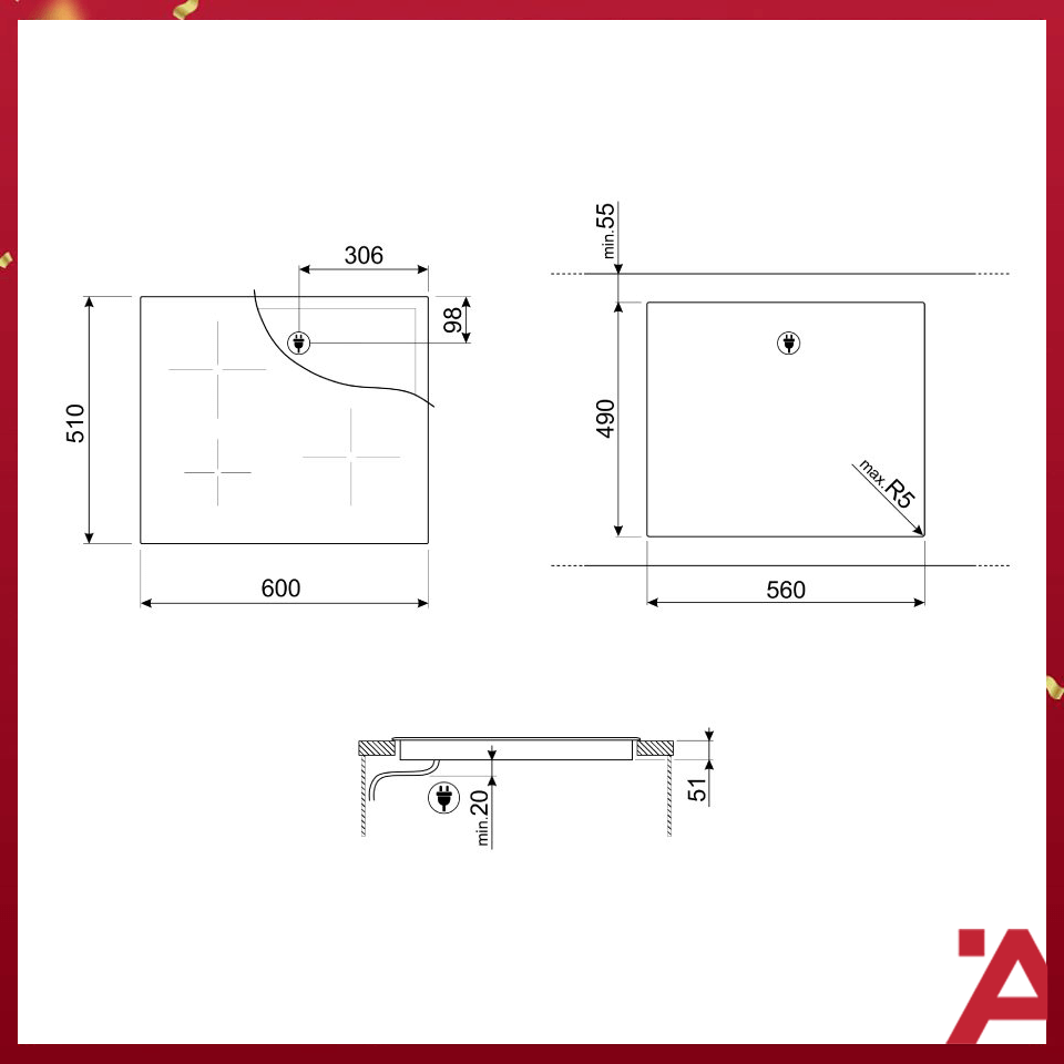 - Bếp từ lắp đặt âm, 3 vùng nấu