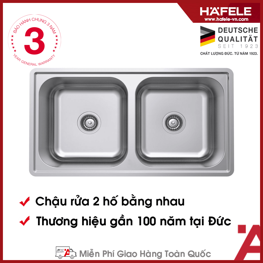- Chậu rửa 02 hố chậu bằng nhau, độ sâu bồn 200mm
