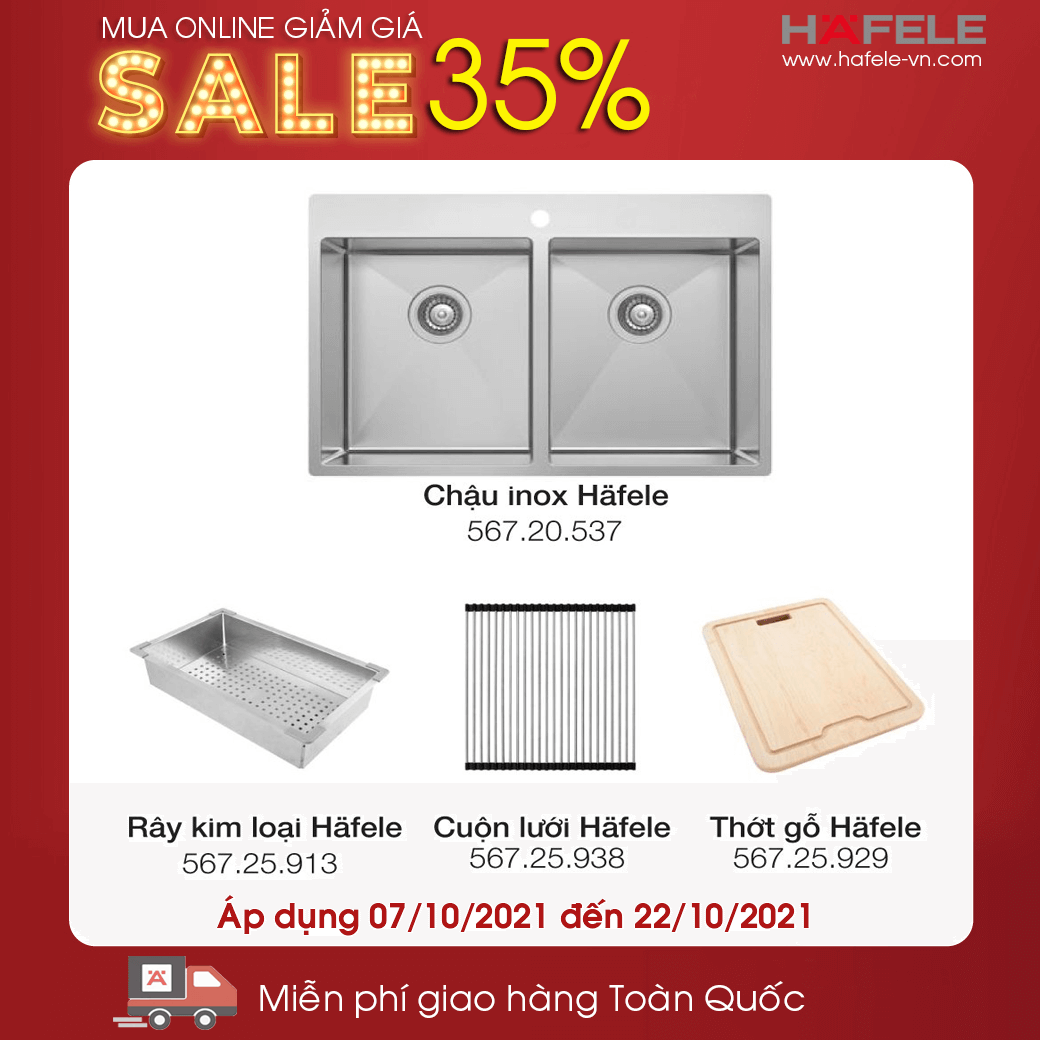 - Combo sản phẩm chậu rửa chén và cuộn lưới kim loại Hafele