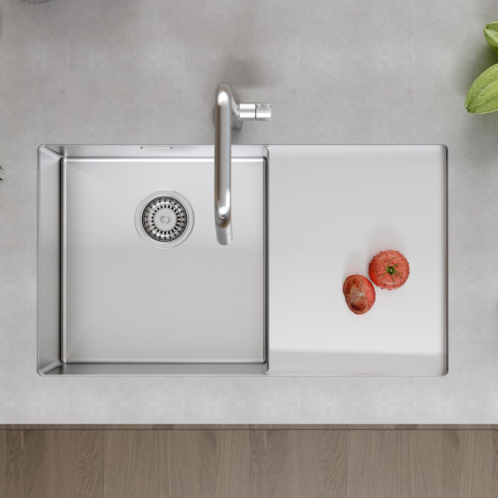 - Chậu rửa chén bát Inox 1 hố chậu & 1 bàn chờ, màu inox