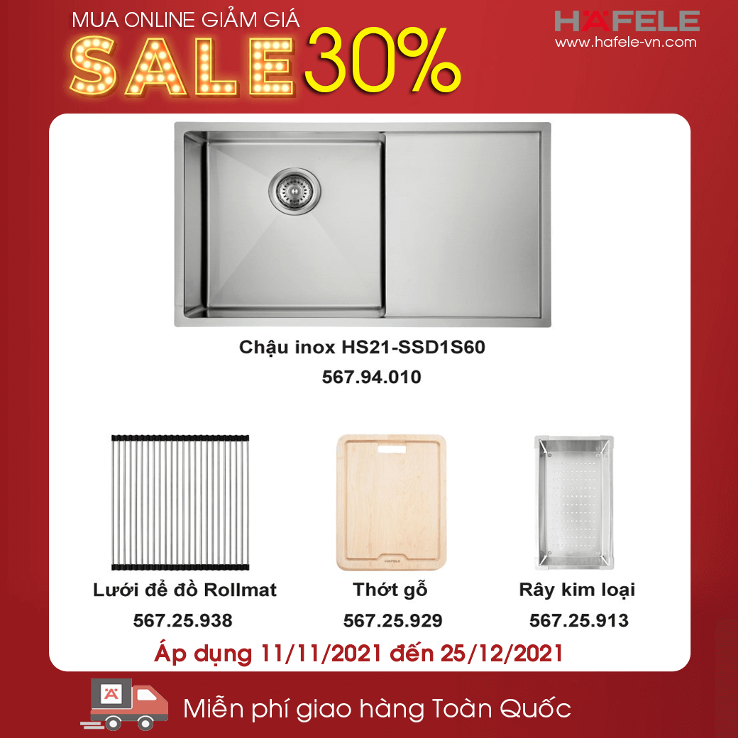 - Combo sản phẩm chậu rửa chén và cuộn lưới kim loại Hafele