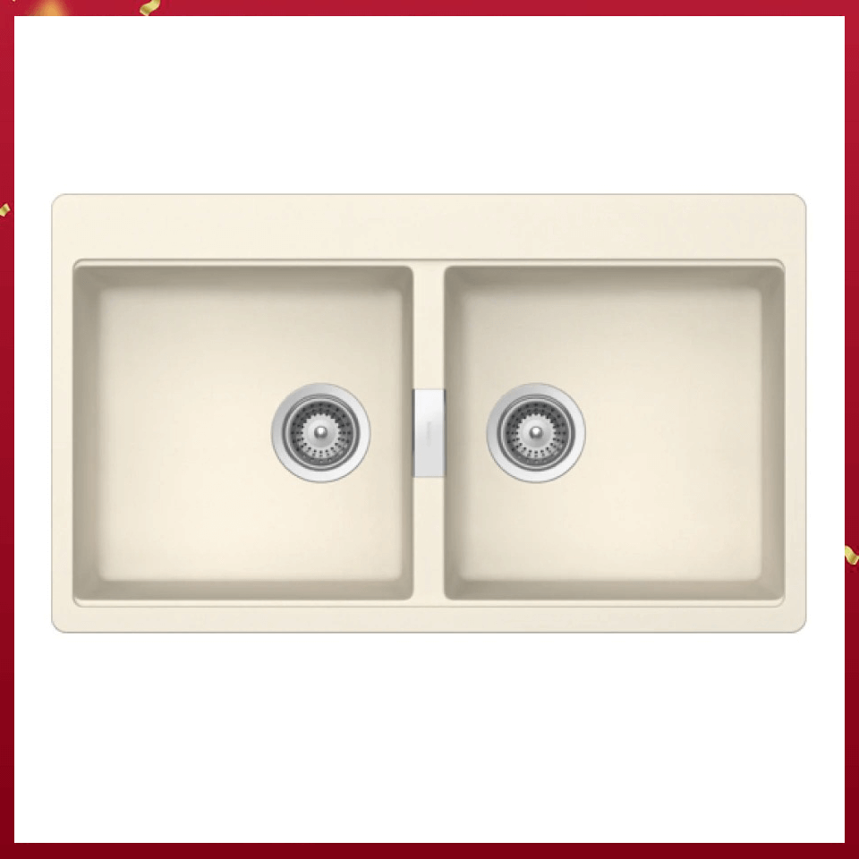 - Chậu rửa chén bằng đá, màu kem, 2 hố chậu bằng nhau