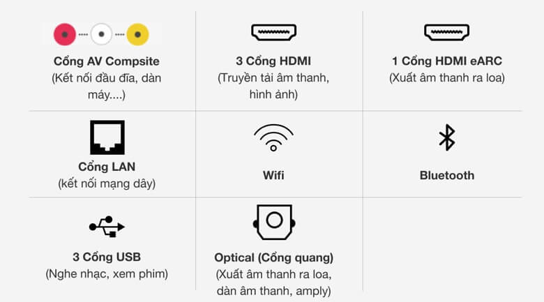 DTS Digital SurroundS-Master Digital AmplifierDTSDolby AtmosS-Force Front SurroundAcoustics Surface Audio+Công nghệ nâng cấp âm thành vòm 3DDolby AudioCho phép tùy chọn âm thanh theo nội dung |