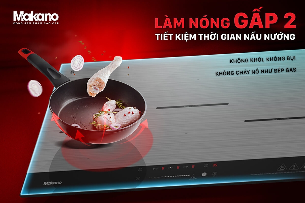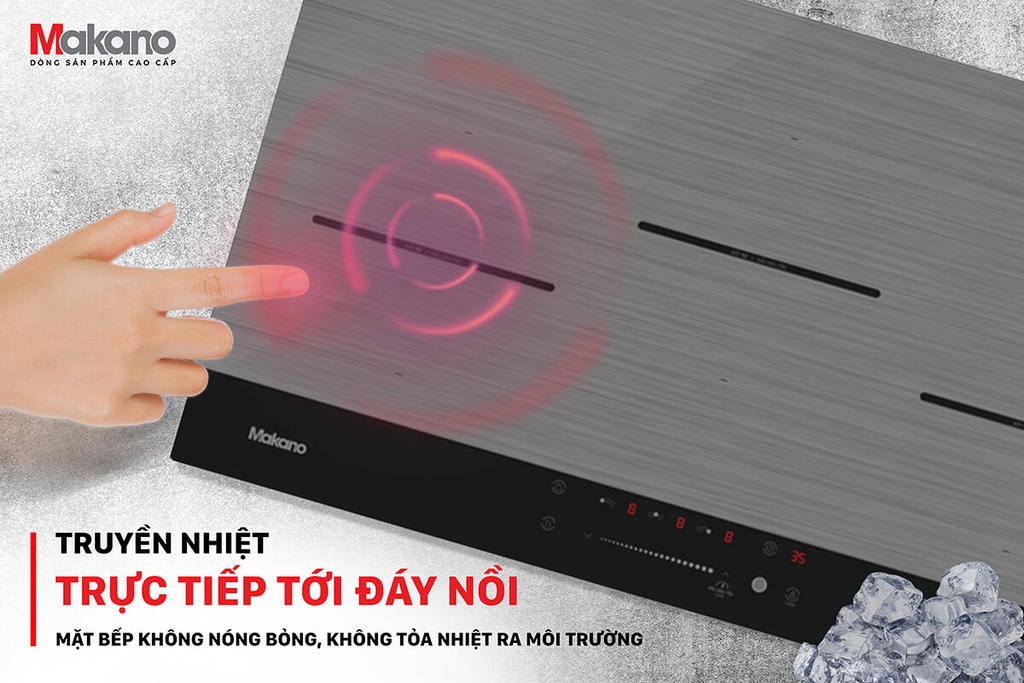 • 3 vùng nấu, 9 mức công suất/nhiệt độ, nấu siêu nhanh