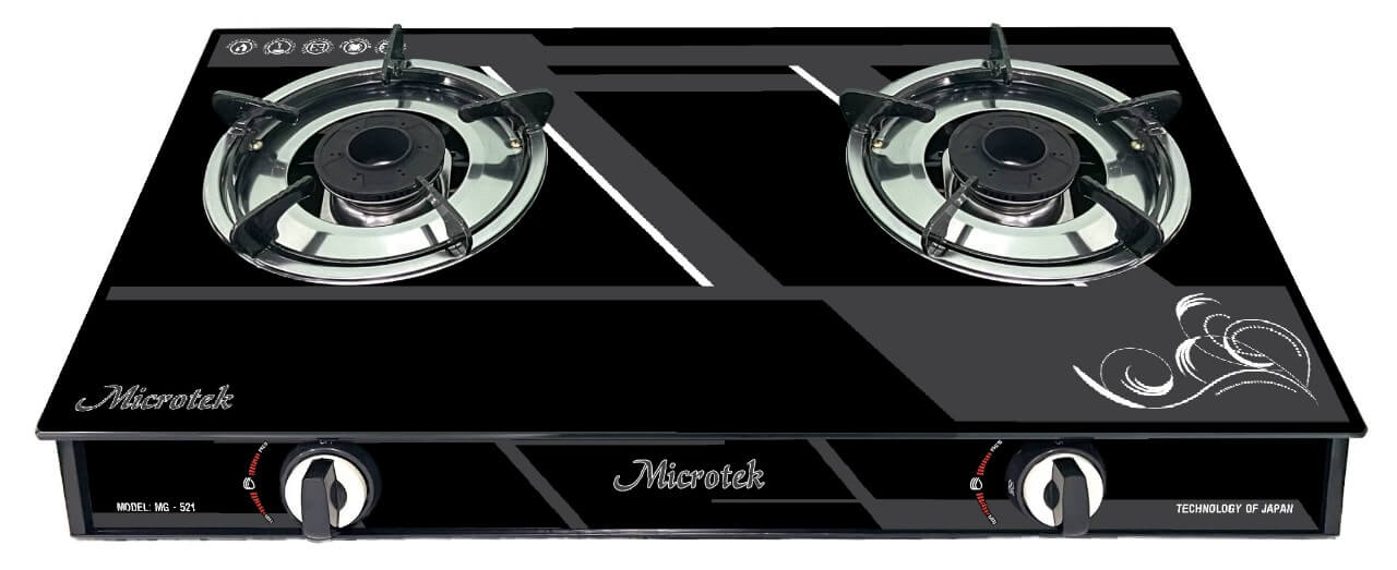 Bếp Gas Đôi Mặt Kính Microtek MG-521 mặt trên bếp ga được trang bị một lớp kính cường lực dày 7mm nên người sử dụng có thể hoàn toàn yên tâm để những đồ dùng nấu ăn khác dưới 50kg lên trên mà không cần lo lắng mặt kiếng sẽ nứt hay vỡ. Thêm vào đó, bề mặt kiếng cường lực có khả năng chịu nhiệt tốt góp phần bảo vệ các bộ phận bên trong bền một cách an toàn nhất cũng như hỗ trợ bạn dễ dàng lau chùi hơn so với những loại bếp gas thông thường khác.
