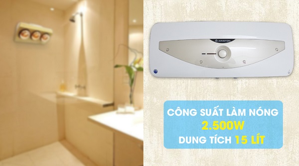 Bình có công suất làm nóng lên đến 2.500W giúp thời gian đốt nóng nhanh hơn và dung tích chứa là 15L sẽ đáp ứng đủ nhu cầu sử dụng cho gia đình bạn.