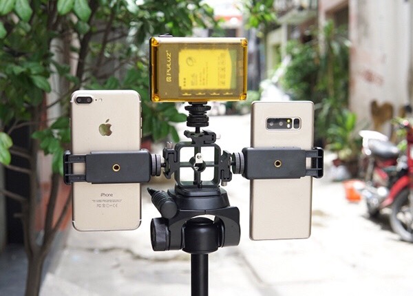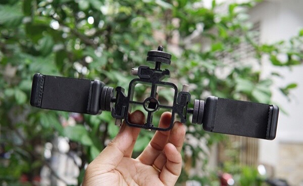 Bộ gắn điện thoại đèn LED và Mic Livestream. Với bộ chia này cho phép bạn gắn cùng lúc hai chiếc điện thoại, thậm chí là ba chiếc nếu cần. Ngoài gắn điện thoại để quay video, Livestream thì với bộ chia này chúng ta có thể gắn thêm đèn LED và MIC hỗ trợ thu âm