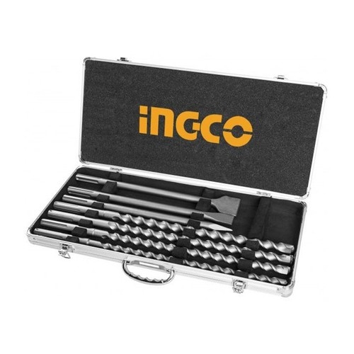 Bộ 4 mũi khoan bê tông gài SDS Max gồm các size: 16, 18, 20, 22 mm X 540mm. 3 mũi đục gồm các size: 18X 400mm (nhọn), 18X 400X 25mm (dẹp) và 18X 400X 50mm (dẹp). Phù hợp để sử dụng cho máy khoan đục Ingco model. : RH12006 and RH16008. TL: 7 kg