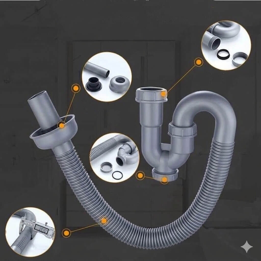 Đây là bộ ống nhựa cho xả chậu rửa lavabo/bồn rửa mặt được thiết kế đặc biệt để ngăn mùi hôi và côn trùng ngược từ đường ống cống.