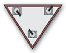 Tam giác xoayDùng với các xe đẩy, kéo thùng tròn nhỏ hay thiết bị di động nhỏ. Khả năng xoay chuyển rất tốt. Lưu ý khi chọn bánh xe, tải trọng được tính chỉ cho ba bánh xe. |