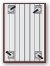 Bốn bánh xoayDùng phù hợp khi cần thường xuyên xoay, đổi hướng di chuyển của xe đẩy. Khi dùng bánh xe đẩy có khóa bánh, cách lắp này cũng phù hợp cho xe di chuyển thẳng và xa cũng như trên đường có dốc. Là cách lắp bánh xe linh hoạt nhất. |