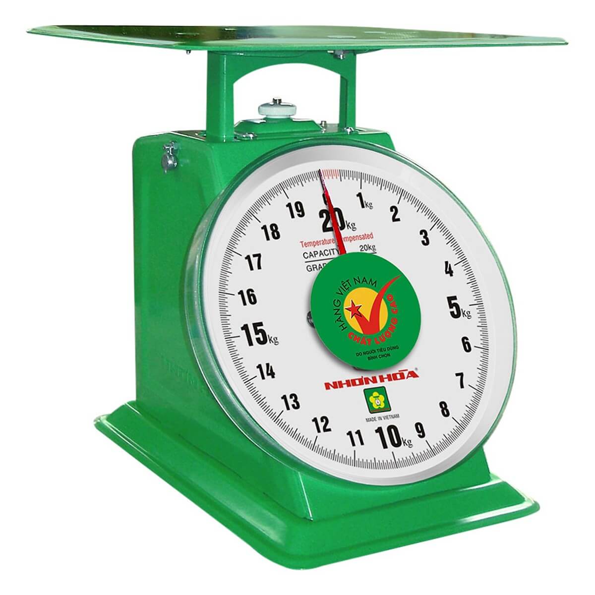 • Ðường kính mặt số : 8 inches• Hai bên mặt hông có dập nổi chữ Nhơn Hoà• Vỏ sắt sơn tĩnh điện• Dĩa Inox tròn• Mặt kính nhựa nhựa PC trong suốt• Mặt số nhựa ABS• Vòng chia kín• Cân có thiết kế thêm lưỡng kim bù trừ nhiệt độ -10 °C → 40 °C |