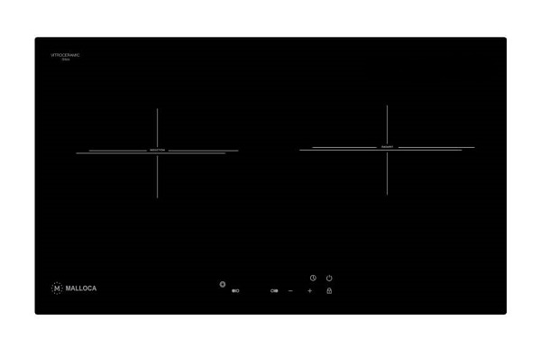 Mẫu bếp điện hồng ngoại kết hợp từ 02 vùng nấu, lắp đặt âm chính hãng MALLOCA