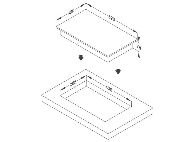- Kích thước mặt kính : W300 x D520 x H78 mm