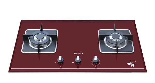 Bếp gas âm kính màu đỏ , 2 vùng nấu bằng nhau