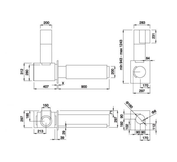 Kích thước: Ø 200mm x W900mm + 407mm.