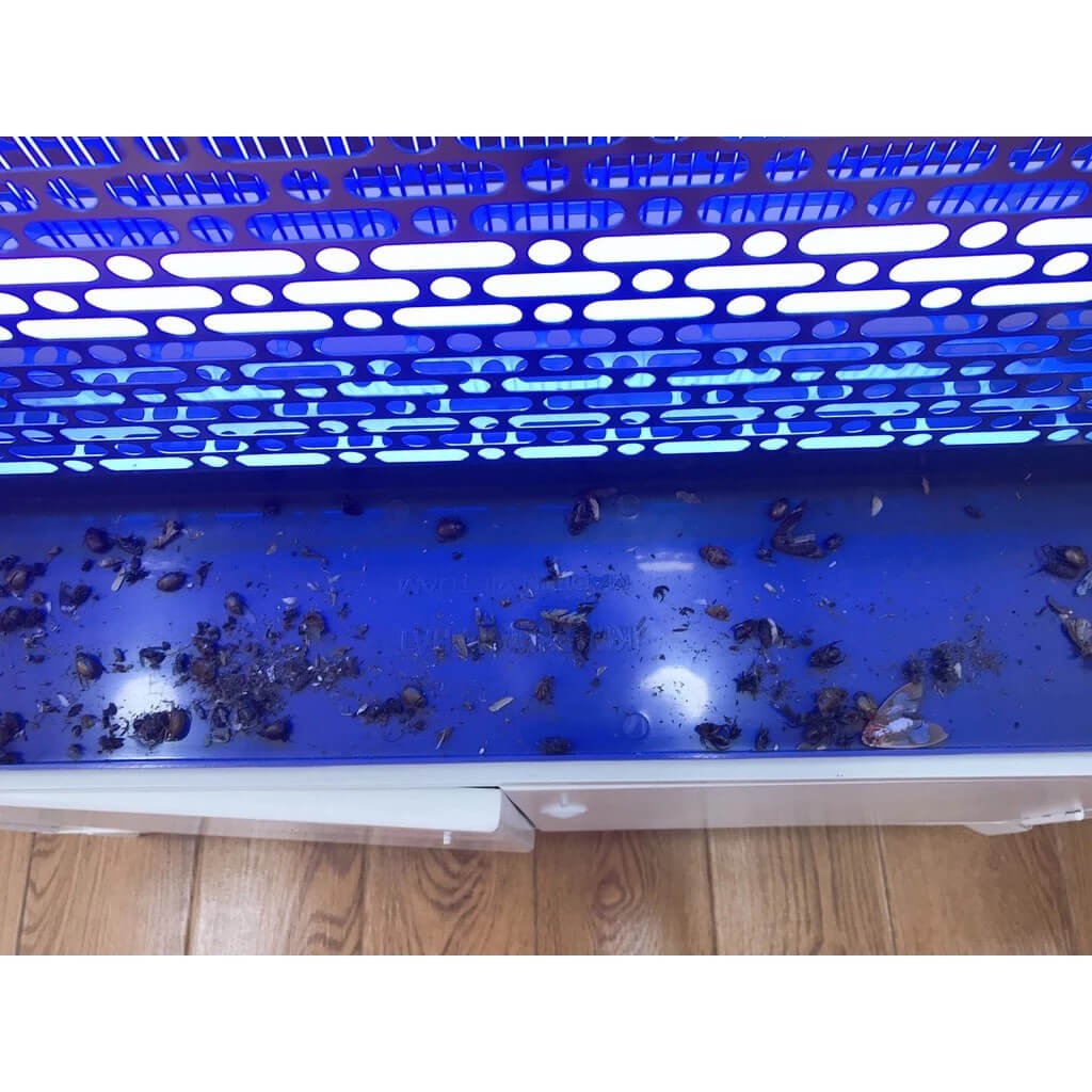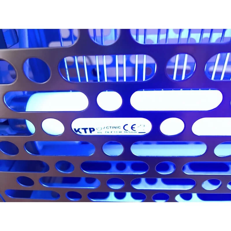 - Khay hứng côn trùng bên dưới được sử dụng bằng nhựa chống cháy, khay hứng côn trùng KTP-40S được thiết kế cao hơn và có ngàm gài an toàn giúp khay chứa nhiều côn trùng và rất khó bị rơi xuống đất.