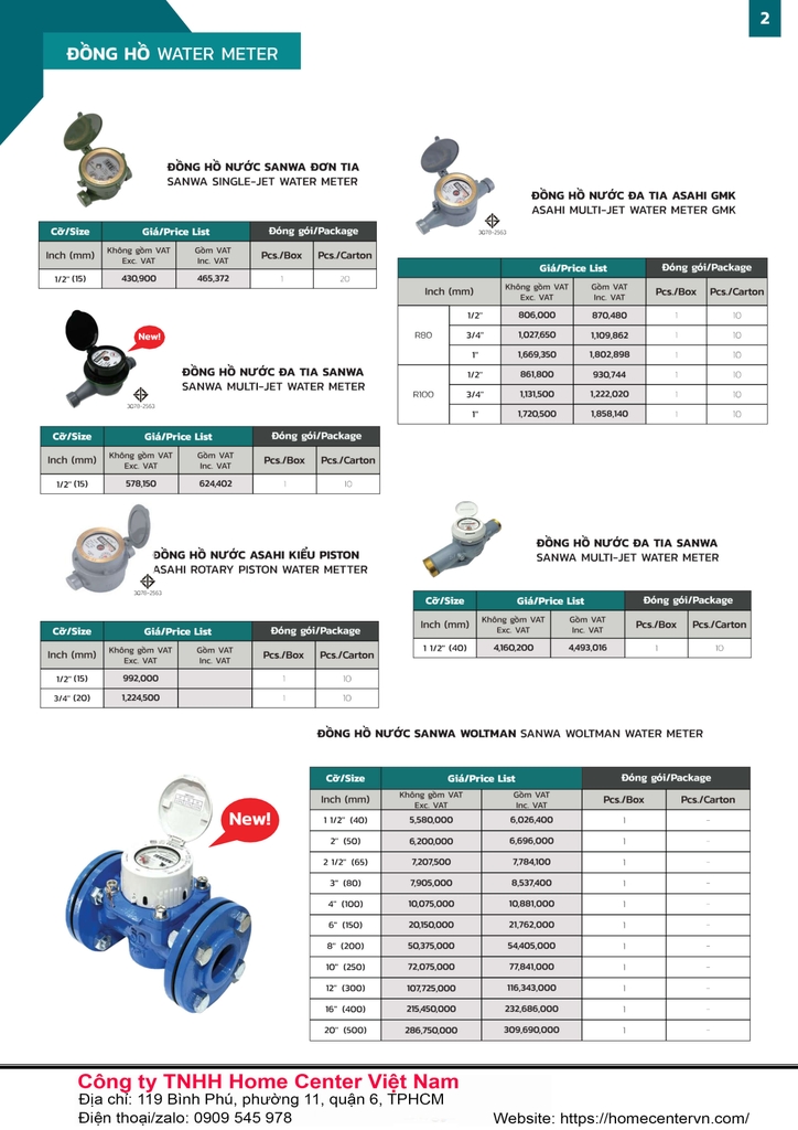 Đồng hồ nước Asahi + Sanwa nhập khẩu từ Thái Lan