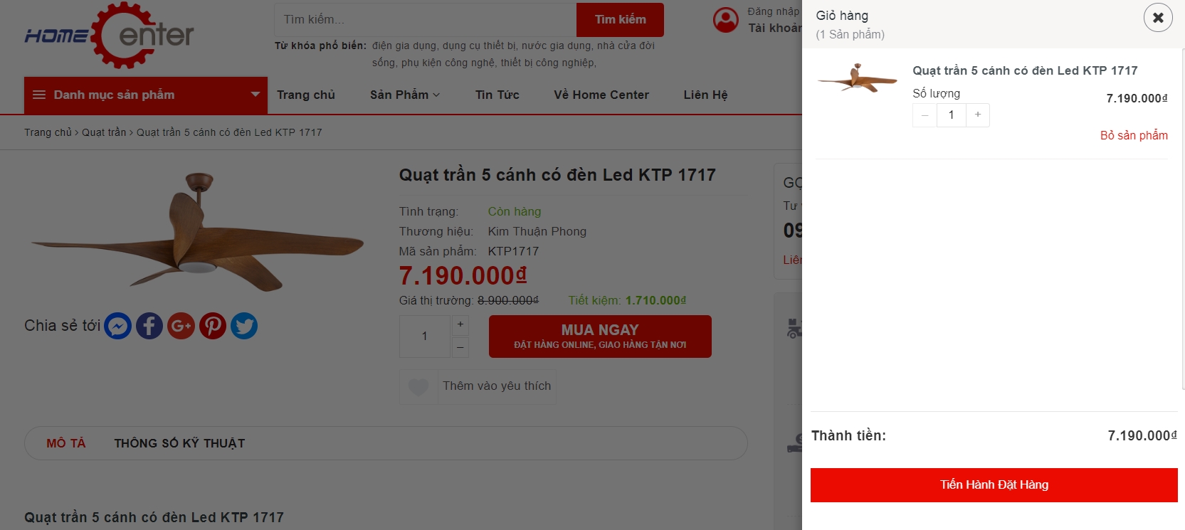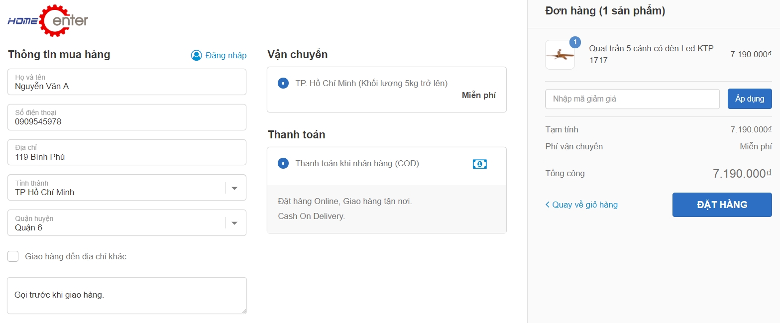 Quý khách có thể đặt hàng trực tuyến ở website HomeCenterVN.com thông qua các bước đặt hàng cơ bản.