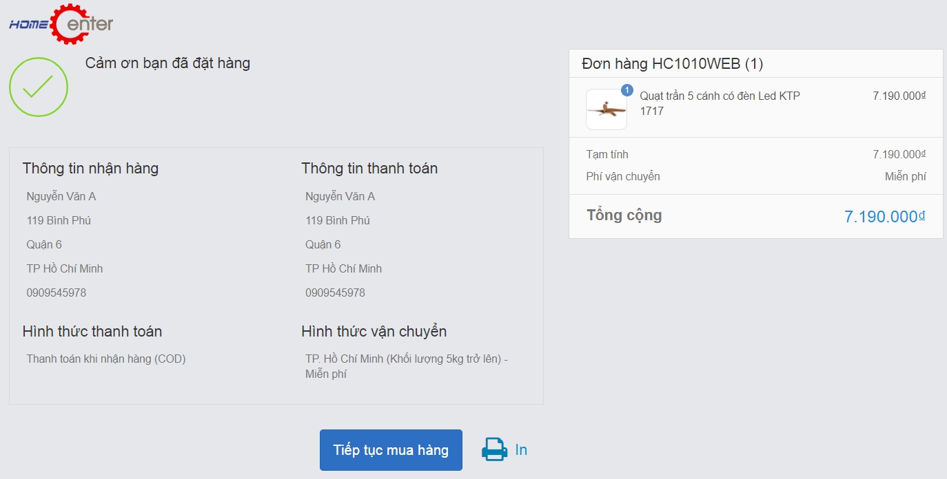 5. Chúc mừng bạn đã hoàn tất đặt hàng.