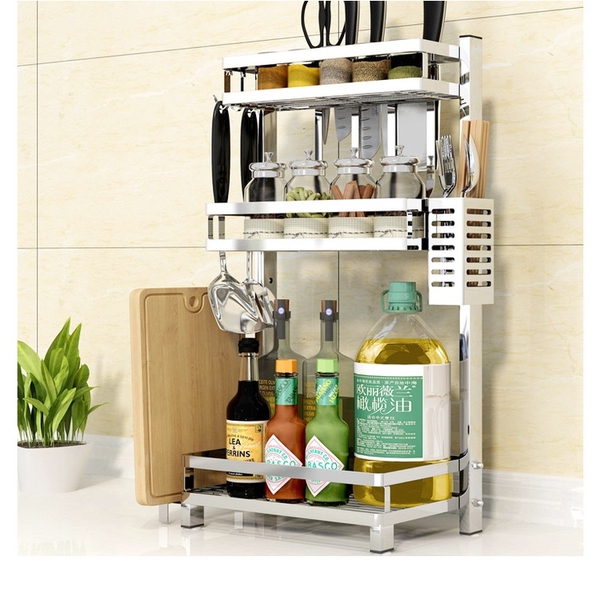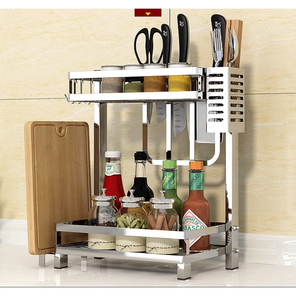 Kệ gia vị 2 tầng, 3 tầng inox không chỉ đựng được chai lọ mà còn có vô số các phụ kiện giúp đáp ứng nhu cầu lưu trữ đa năng cho nhà bếp