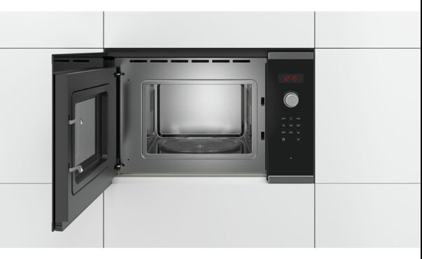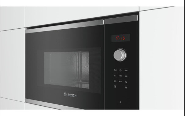 Lò vi sóng âm tủ Bosch BFL523MS0B sử dụng điều khiển cảm ứng điện tử, màn hình Led hiển thị thời gian, công suất vi sóng và chức năng an toàn tự tắt mở cửa khoang lò giúp người dùng dễ dàng sử dụng.