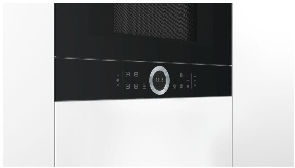 Lò vi sóng âm tủ Bosch BFL634GB1B sử dụng điều khiển núm xoay kết hợp màn hình cảm ứng, đèn Led chiếu sáng bên trong lò giúp người dùng có thể quan sát thức ăn trong khi nấu.