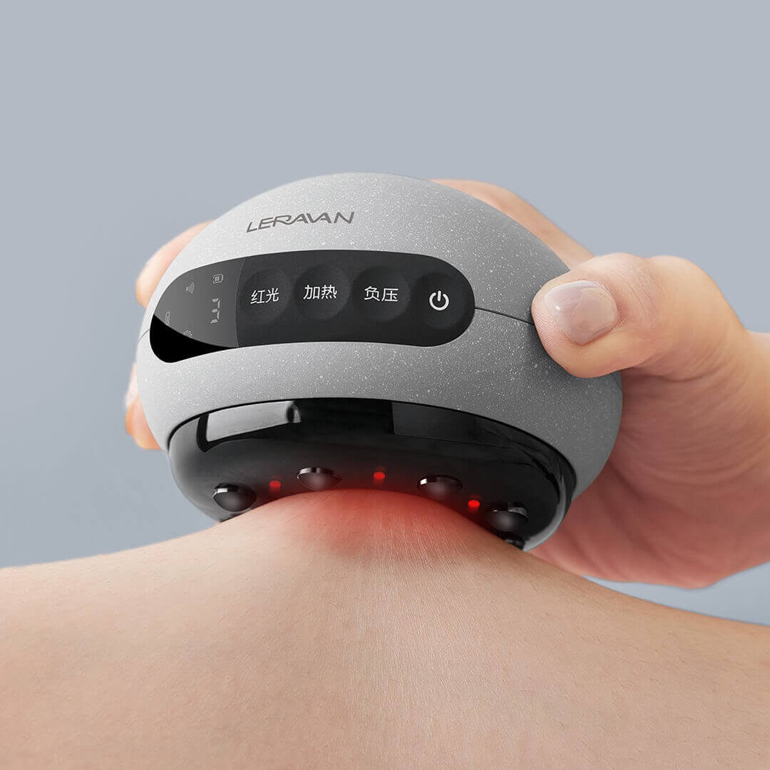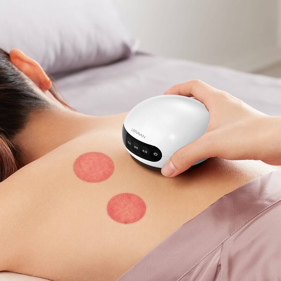 Với máy cạo gió, giác hơi điện Leravan người dùng có thể dễ dàng giác hơi bằng cách đặt máy hút ở các điểm huyệt từ 5-10 phút để làm tắc nghẽn mô cục bộ, sau đó nới lỏng và giải độc cho cơ thể người dùng và hạ sốt hiệu quả. Bên cạnh khả năng giác hơi, người dùng có thể dùng máy để cạo gió. Cụ thể người dùng nên lăn máy theo cùng 1 hướng hoặc vòng cung để tăng cường khả năng lưu thông máu, loại bỏ ứ máu, giảm đau hiệu quả. Lưu ý người dùng nên sử dụng chung với dầu xoa bóp.