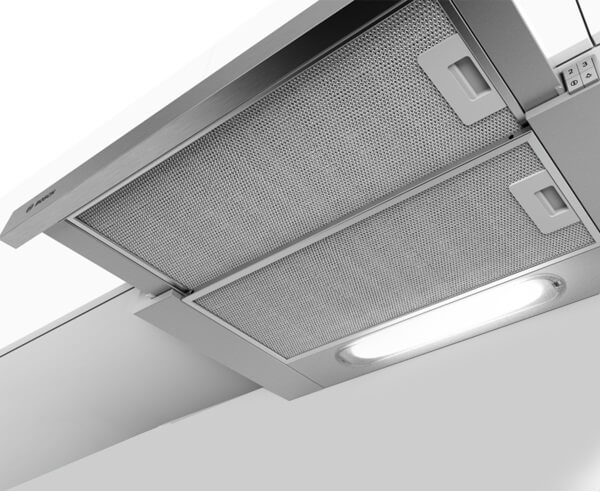 Thiết kế mặt Inox có độ bền cao rất phù hợp với những không gian bếp của gia đình Việt, lưới lọc bằng nhôm, nhiều lớp có thể tháo rời và giúp ngăn không cho dầu mỡ đi vào giúp máy hoạt động tốt và bền hơn.