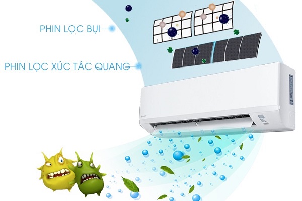Máy lạnh Daikin FTV35BXV1 có phin lọc xúc tác quang Apatit Titan, bụi bẩn và vi khuẩn sẽ bị tiêu diệt, vi rút thì được vô hiệu hóa để cho bạn có thể tận hưởng không khí thực sự trong lành bên trong phòng.