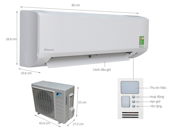 Thông tin cục lạnh:Dài 80 cm - Cao 28.8 cm - Dày 20.6 cm - Nặng 9 kg