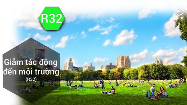 + Sử dụng gas R-32: Gas R-32 không chỉ giúp hạn chế tác động đến tầng ozon vì không chứa chất gây suy giảm tầng ozon, ít ảnh hưởng đối với tính trạng nóng lên của môi trường mà còn giúp tiết kiệm năng lượng vượt trội do có thời gian làm lạnh nhanh chóng và mạnh mẽ.