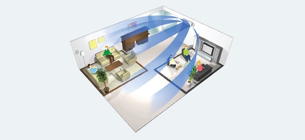 Luồng gió 3 chiều kết hợp đảo gió tự động theo phương đứng và phương ngang, luân chuyển không khí đến mọi nơi trong phòng tạo ra nhiệt độ đồng nhất ở những không gian lớn.