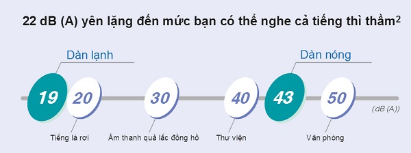 Dàn nóng : giảm độ ồn từ 3 đến 7 dB(A) so với vận hành danh định