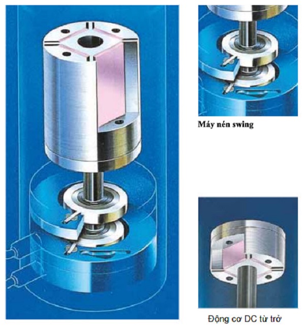 Nhờ chuyển động nhẹ nhàng, máy nén Swing làm giảm ma sát và độ rung đồng thời loại bỏ tình trạng rò rỉ môi chất lạnh trong suốt quá trình nén.