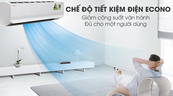 Bên cạnh Inverter thì tính năng Econo cũng có khả năng tiết kiệm điện hơn cho bạn. Khi kích hoạt tính năng này, máy lạnh sẽ tự động giảm công suất chỉ đủ cho một người dùng, mang đến sự thoải mái nhưng vẫn đảm bảo tiết kiệm điện.