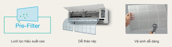 Đây là bước bảo vệ đầu tiên, lưới lọc hiệu suất cao sẽ lọc sạch các bụi bẩn trong không khí.