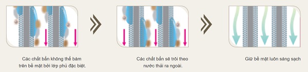 Hệ thống trao đổi nhiệt sẽ hấp thụ và loại bỏ hoàn toàn bụi bẩn qua đường thoát nước. Cơ chế này có thể hấp thu những hạt bụi cực nhỏ không thể lọc được bằng lưới lọc.