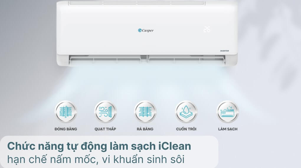 | Công nghệ nổi bật: iClean, iFeel, iSaving, Làm lạnh nhanh Turbo, Thiết kế EasyCare | Hiệu suất lăng lượng: 4 sao/CSPF: 3.87 |