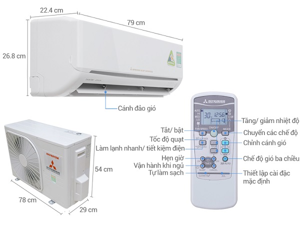 Thông tin cục nóng:Dài 78 cm - Cao 54 cm - Dày 29 cm - Nặng 29 kg