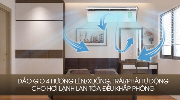 Mát lạnh đều khắp các ngóc ngách trong phòng nhờ hệ thống đảo gió 4 hướng hiện đại