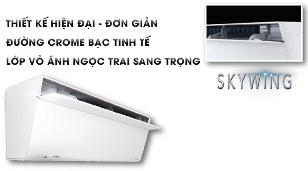 Điểm đặc biệt của dòng máy lạnh này là cánh đảo gió Skywing được đặt ở phía trên, lợi ích của thiết kế này là hơi lạnh sẽ đi dọc theo trần nhà rồi đến các bức tường, hơi lạnh có xu hướng đọng xuống và hơi nóng nhẹ hơn sẽ bay lên, do đó khi bạn ngồi trong phòng sẽ có cảm giác mát lạnh dễ chịu thoải mái, hạn chế việc bị khô da.