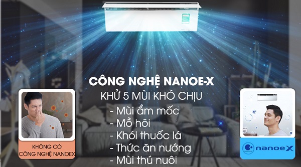Đây là công nghệ rất độc đáo và gần như là công nghệ khử mùi mạnh nhất trên máy lạnh hiện nay. Nhờ NanoeX mà mùi thuốc lá, mùi ẩm mốc,... được thanh lọc một cách dễ dàng. Ngoài ra, với công nghệ này còn sản sinh ra rất nhiều gốc OH, tạo độ ẩm tốt cho da.