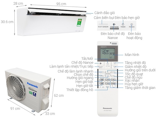 Thông tin cục nóng:Dài 91 cm - Cao 62 cm - Dày 33 cm - Nặng 33 kg