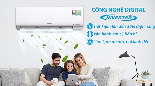 Được ứng dụng công nghệ Digital Inverter trong quá trình vận hành, bạn sẽ hoàn toàn yên tâm về khả năng vận hành êm ái, bền bỉ và tiết kiệm điện năng đáng kể của chiếc máy lạnh Samsung này.