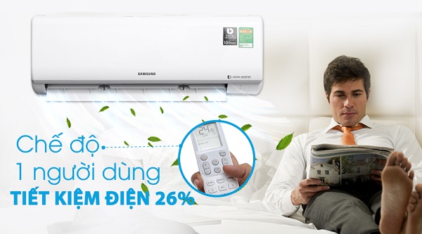 Nếu trong phòng chỉ có một mình bạn, hãy sử dụng chế độ 1 người tiết kiệm điện của chiếc máy lạnh này nhé. Chỉ với một nút bấm đơn giản, máy lạnh sẽ chỉ tập trung làm lạnh tại vị trí của bạn, giúp tiết kiệm điện năng hơn nhưng không làm mất đi sự thoải mái của bạn.